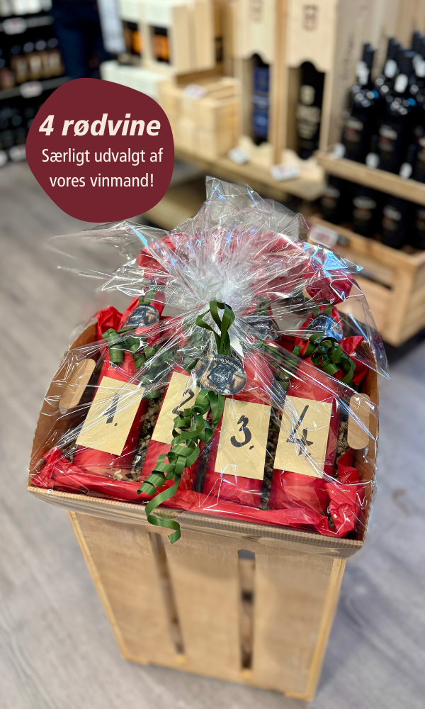 Gør december måned ekstra lækker med vores vinmands adventskalender fyldt med lækre rødvine! Her får du 4 udsøgte vine der tager dig på en smagsrejse gennem 4 europæiske vinkyndige lande. Hver weekend op til jul kan du åbne en ny flaske, og nyde en autentisk vinoplevelse fra det pågældende land– en perfekt måde at varme op til julen på, eller forkæle en vinelsker med noget helt særligt.