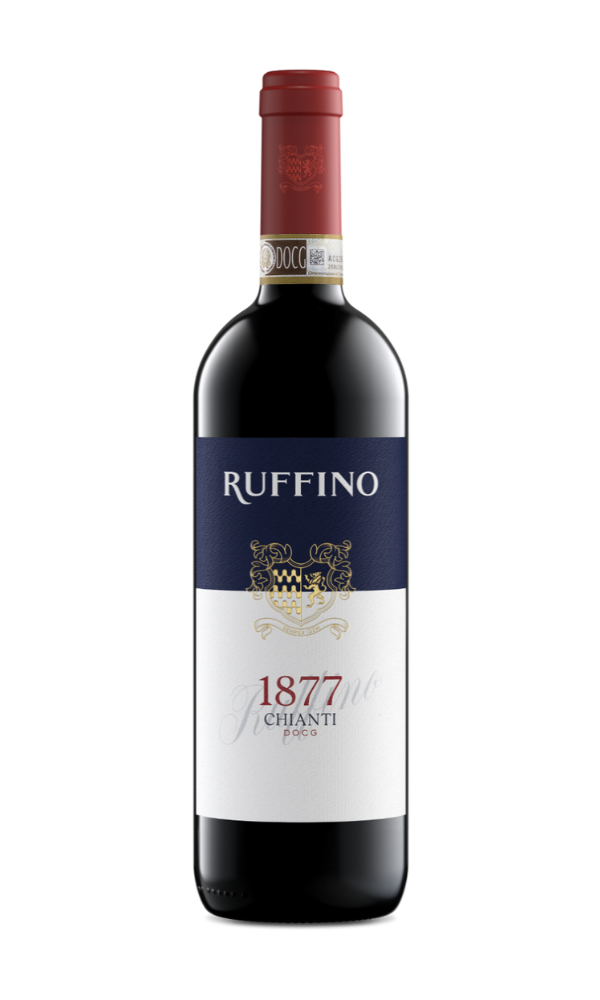 Ruffino Chianti 1877 DOCG hylder vingårdens historie – navnet stammer fra den allerførste Chianti fra 1877, som Ruffino producerede. Vinen fremstilles primært af Sangiovese med supplerende druer som Merlot og Cabernet Sauvignon. Druerne dyrkes i Chianti-området, hvor jordbundens galestro og højde (ca. 200-350 meter) bidrager til vinens karakter.