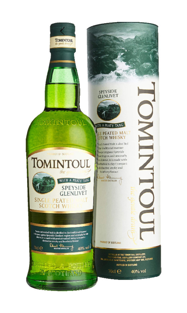 Tomintoul Peaty Tang er en unik single malt whisky fra det anerkendte Tomintoul-destilleri, beliggende i Speyside-regionen i Skotland. Selvom området traditionelt er kendt for ikke-røgede whiskyer, skiller Peaty Tang sig ud ved at inkludere en subtil tørverøg, hvilket giver en distinkt smagsprofil. Denne whisky er fremstillet ved at kombinere destilleriets røgede og ikke-røgede whiskyer, hvilket resulterer i en kompleks og afbalanceret smagsoplevelse. Duften byder på lette noter af lyng og røg med et strejf af blomster. Smagen er blød og indbydende med en antydning af nødder, afsluttet med en lang eftersmag præget af røg, tørv og en let sødme.